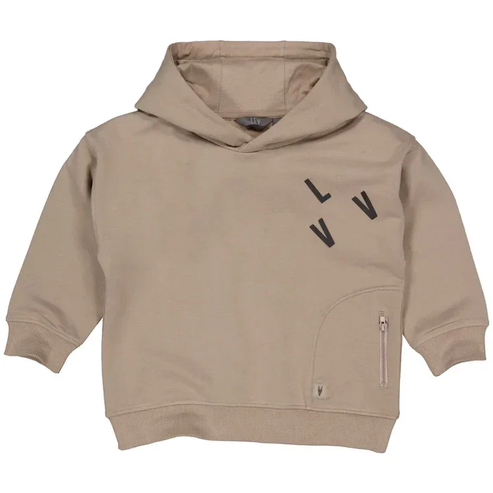 Stoere sweater met kapuchon (vast)Manchetten aan de mouwen en boord aan de onderkant